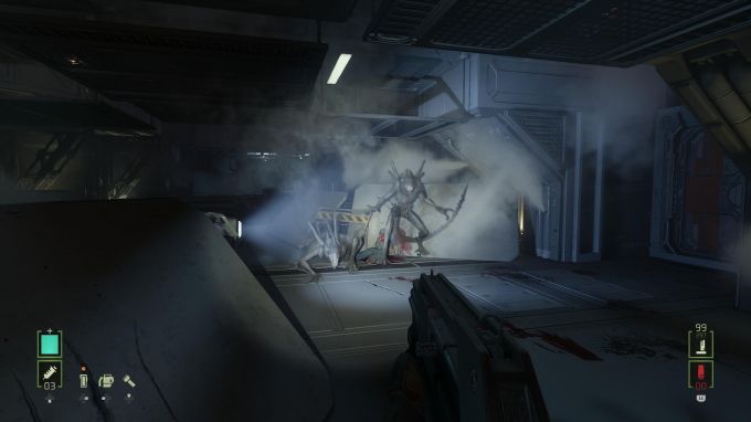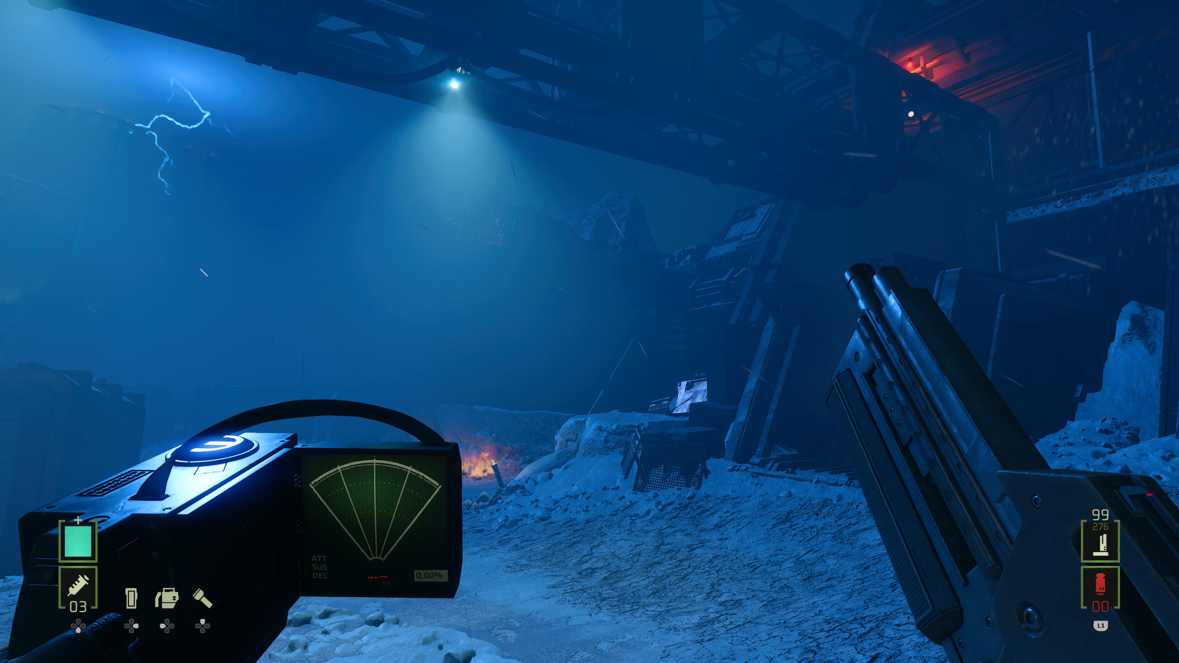 Kicsit tartottam a számomra érdektelenebb kategóriába tartozó VR-játék átiratától, de néhány apróságon túl nem volt bajom az új verzióval. Az Alien: Rogue Incursion Evolved Edition FPS-ként és Alien-játékként is egészen jól működik, még ha nem is kiemelkedő. Árulkodó nyomként csak néhány minijáték maradt, melyeknél lehegesztett ajtókat nyitunk meg, vagy éppen elektromos feszültséget juttatunk a rendszerbe. Persze az elején a program inkább emlékeztet sétaszimulátorra, miközben mindenben fogja a kezünket, de ezt is könnyen meg lehet szokni. A látvány nem AAA-s kategória, de a VR-os alapokhoz képest és az Unreal Engine 5 miatt azért így is egészen mutatós. A zárt helyszínek rendben vannak, és ugyan a nyílt terepek hagynak némi kívánnivalót maguk után, de összkép terén így is abszolút elégedett voltam. Ami viszont mindenképpen a gagyi kategóriába tartozik, az a xenomorfok feloldódása és eltűnése a padlóban. Ez a megoldás már az 576 Konzolnál is kiborítónak bizonyult, ott is igénytelennek tartottam, azóta pedig eltelt néhány év, sőt évtized. A Rogue Incursion tehát leginkább a hangulat és az akció terén remekel. Természetesen fegyverestül és gépestül megelevenedik a retrofuturisztikus Alien-univerzum, mely pillanatok alatt beszippantja a játékost – még akkor is, ha amúgy valaki nem akkora rajongója a franchise-nak. A plafonon és járatokban szaladgáló alienek és sikolyaik, a felharsanó pulse rifle-ök megteszik, ami tőlük telik, így komoly panasz nem lehet az élményre. A közel 6-8 órás játékidő alatt letudtam néhány kéretlen infarktust, annak meg különösképpen megvan a varázsa, ahogy a mozgásérzékelőt a kezünkben tartva próbáljuk felfedezni az ismeretlen terepet, ahol tudjuk jól, hogy semmi jó nem vár ránk, de erőt veszünk magunkon és minden sarkon xenomorfra számítva merülünk el a sötétségben.