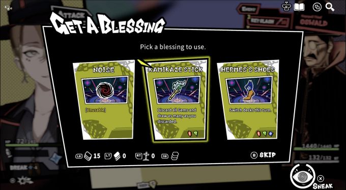 A harc a játék sava-borsa. Ennek során egy, vagy akár több paklit húzunk elő a zsebünkből. Három akciólapot tartalmaznak a paklik, amelyek kijátszása az alsó sorban random érkező, tetszőlegesen választható piros-zöld-kék gyémántokkal történik. Minden támadásnak saját gem-igénye van, az egymás után felsorakozó támadás-lapok pedig ha színre-színt követnek, akkor láncolhatóak, így brutális kombókat lehet bevinni az ellenfeleknek. A harcok után kapunk kijátszható buff/debuff lapokat is, amelyet minden kör elején elhasználhatunk, és kaphatunk támadás kártyákat is, amelyekkel a paklit variálhatjuk, vagy meglévő támadásainkat szintezhetjük, amolyan egész számú szorzók szerint. A cél, hogy ügyesen tudjunk láncolni, a lehető legkevesebb gyémánt felhasználásával a lehatékonyabb támadássorozatokat tudjuk bevinni. Van cancel, vannak az ellenfelek tarsolyában is különleges ellencsapások, szóval olyan színes az egész, mint maga a prezentáció.