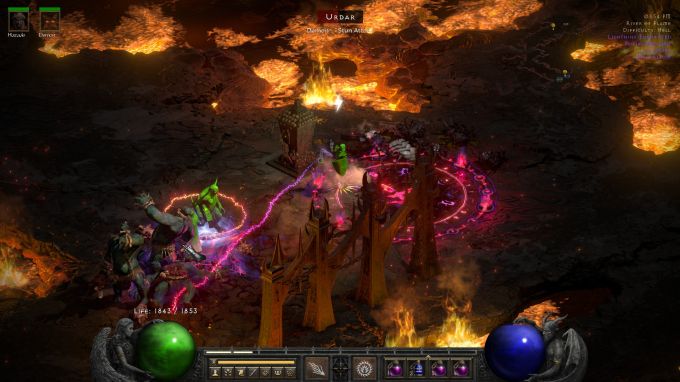 De legyünk őszinték, elsősorban nem ezért vagyunk itt. A nagy kérdés az, hogy milyen játszani vele, aminek motorja pedig a képességek. A három kategória első tagja a Chaos, ami a klasszikus varázsló skilleket tartalmazza. Ebből három darab tűzalapú, mind nagy területet lefedő, melyek nevei ismerősek lehetnek az igazán harcedzett Diablo játékosok számára: Ring of Fire, Flame Wave, Apocalypse. Dereng valami? Bizony, ezek szóról-szóra megegyeznek Diablo 1-es skillekkel. Nosztalgikus, egész képernyős (és működő) varázslatok a tűz szerelmeseinek. Azonban ennél is izgalmasabb lehet a maradék három démoni ihletésű támadó varázslat, melyek az eddig szinte teljesen elhanyagolt magic kategóriában sebeznek. A Miasma Bolt egy klasszikus, spamelhető alaptámadás, meglepően nagy sebzés és DoT potenciállal. A Miasma Chain a kiteolás, vagyis a szörnyek taktikusan terelt tömegeinek kivégzésére szolgál. A kezdőpont lehet akár a földre, vagy célszemélyre rögzített, a végpontja pedig mindig a karakteren nyugszik. A kulcs a jó pozicionálás, azonban az elhelyezése néha problémás tud lenni, ugyanis tereptárgyakban, szörnyekben elakad, teleportálás után pedig eltűnik. Nem minden szituációban a legkényelmesebb, vagy épp legjobb megoldás, de némi gyakorlattal, tágabb tereken páratlan eszköz. Az Abyss az igazi fire and forget darab, ami nem csak látványra és sebzésre remek, de CC-t is biztosít azzal, hogy a célpontokat összerántja. Mindhárom képesség hatáskörét és időtartamát pedig egy passzív képességgel (Enchaned Entropy) lehet növelni. Nem elhanyagolható, hogy ez a mágiaiskola a magic sebzéstípus végett hellen is alig ütközik érdemi immunitásba. Sigil alkategóriában van még három skill, melyek lényegében földre rajzolt átkok. A Lethargy (főként) bossok lelassítására kiválóan alkalmas darab, a Death a warlock saját kis corpse explosionje némi grátisszal, a Rancor pedig bár mókás, de kevésbé hasznos felfestés, aminek körein belül a szörnyek egymásnak esnek. És ha már itt járunk: a Rancor gyakorlatilag az egyetlen Chaos képesség, aminek létjogosultsága end-game szinten megkérdőjelezhető. Ami egy nagyon jó arány az összes többi kaszthoz képest.