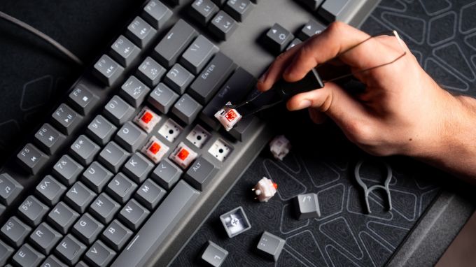 A csomagban helyet kapott amúgy két pót-switch is (biztos, ami biztos), amihez jár pluszban egy switch-cserélésre alkalmas fémcsipesz, na meg egy minőségibb USB-C kábel is. A Thock V2 szoftveres háttere egy kb. 80 megabájtos támogató applikációval egészül ki, ami nem tűnik bloatware-nek, és nem is túl intruzív. Ha makrókat szeretsz állítgatni, vagy az ARGB háttérvilágítás beállításaival akarsz vacakolni, akkor tudod, hogy mit fogsz találni a programban. Kifejezetten kiemelkedő része nincs ennek az aspektusnak, a program és a hardver tudja, amit elvárunk tőle.