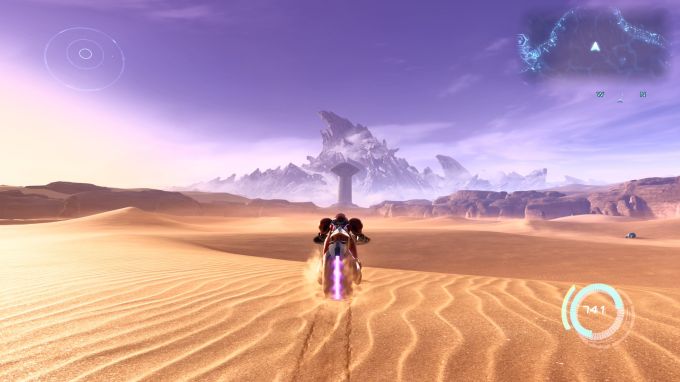 Sokat híreztek a Vi-0-La motor szerepéről, és általában ez az új elem jelenti a játékkal szemben megfogalmazott kritikák törzsét is. A Vi-0-La nem más, mint a Volt Forge pályán összeállított ultraszexi motor, amivel a Metroid Prime 4 hub-világát (overworld-jét, ha úgy jobban tetszik) tudjuk átszelni. A járgány egyfajta közlekedési és harci eszköz is egyben. Képzeljétek, hogy milyen mesteri az, amikor a narratíva és a játékmenet összefonódik a Metroid játékokban. Ennek kiváló példája a második nagy labirintus, ami gyakorlatilag a "motorgyár". Itt gyártották ezeket az eszközöket annak idején a Lamornok. Az egész dungeon aköré van felfűzve, hogy a Vi-0-La-t megépítsd, és a csodálatos pályaív végén tiéd a moci, és tiéd a sivatag! Felszabadító érzés először kimenni a terepre, és igazából sokadjára is élveztem a sivatagi grasszálást. Szerencsére az overworld nem túl nagy, szerintem másfél perc alatt átszeled egyik sarkából a másikig. Innen nyílnak a fő biomok (a havas, erdős, vulkános, bányás és a már emlegetett Volt Forge, na meg a terep közepén lévő időtorony). Cserébe nincs is túl sok minden más elrejtve a terepen. Vannak elásott rakétásládák, van pár roncs, ahonnan egy mech alkatrészeit szedjük össze a végjátékban, és néhány shrine, ahol a fegyverek erejét turbózhatod. Ja, és ott vannak a zöld kristályok, amelyeket szintén az endgame időkben fogjuk hasznosítani (bár nem árt korábban is gyűjtögetni őket).