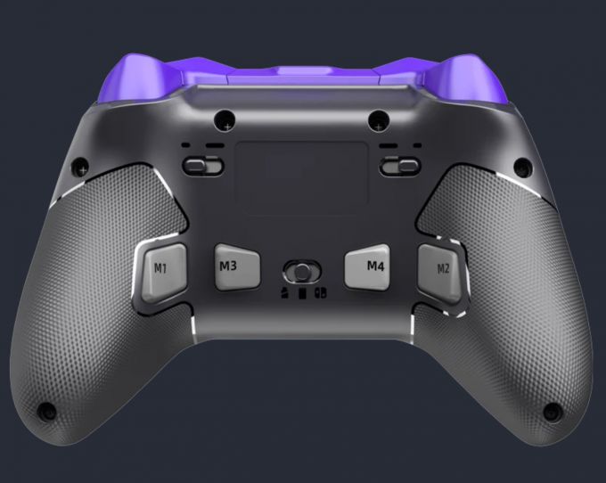 Középen egy szokatlan ikon- és gombsor található, amelyek közül a fenti pár a szokásos Select/Start (Switchen - és +) funkcionalitást hozzák. Ezen felül középen a screenshot- és a home-gombokat találhatjuk, alul pedig a funkciógombot (egyfajta softkey-ként). Ezek között helyezkedik el a négy csatorna státusz LED-je. A hátoldalon négy programozható gombot lelhetünk kíváncsi ujjainkkal, amely nekem a Steam Deck konfigurálható gombjait és szintén a magasabb kategóriás verseny-padok lehetőségeit juttatta az eszembe.