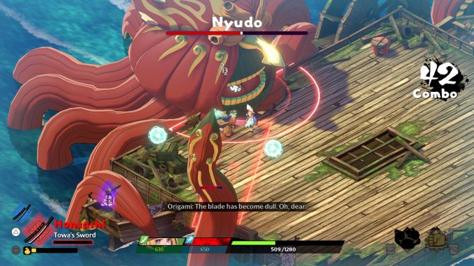 Hozzáteszem, hogy nekem a Towa and the Guardians of the Sacred Tree alapvetően egy szimpla fantasy akció-RPG, és véletlenül sem emlegetném minden bekezdésben a Hades-t, ami bár valóban remek játék volt, de az alapvető roguelite elemeken felül nem sok minden van, amiben a Supergiant Games és a Brownies alkotása hasonlít egymásra. Engem ráadásul az egészen egyedi, a régi japán (és részben kínai) festményeket idéző színvilág és stílus fogott meg, nem pedig az, hogy mekkora DP-t okozó támadásokkal operálnak a hősök és milyen roguelite jellemzői akadnak mechanikának.